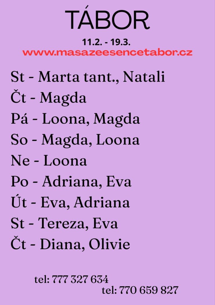 | Místo pro setkání: | Masážní salón |