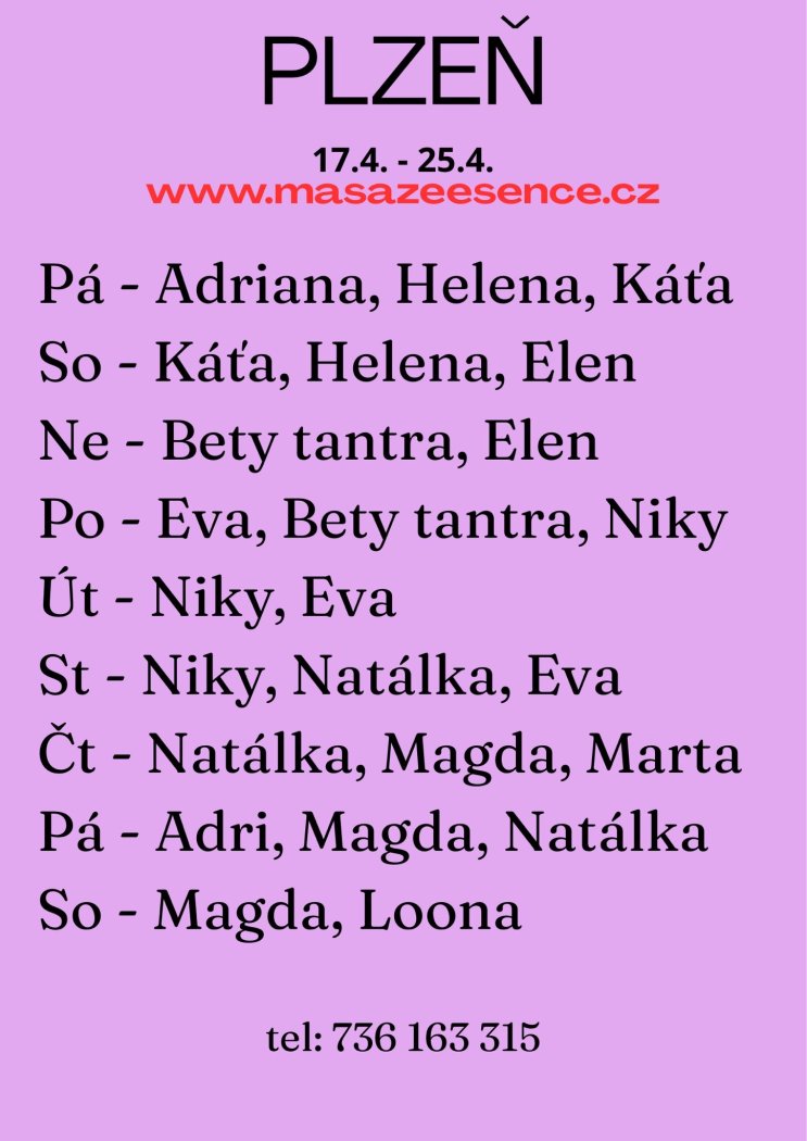 | Čtvrtek | Na dotaz |