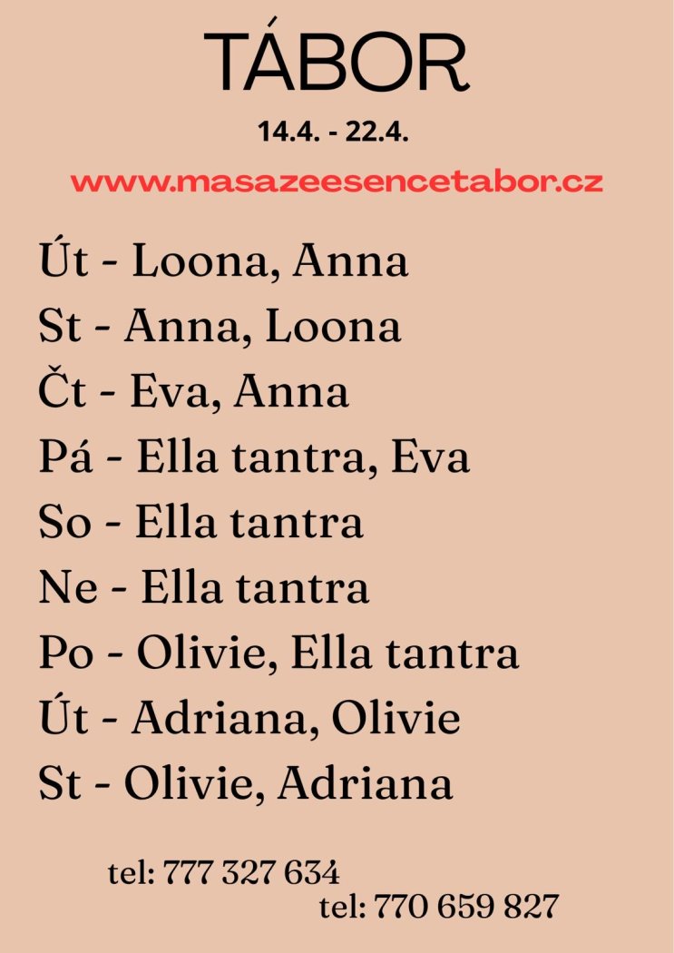 | Místo pro setkání: | Masážní salón |